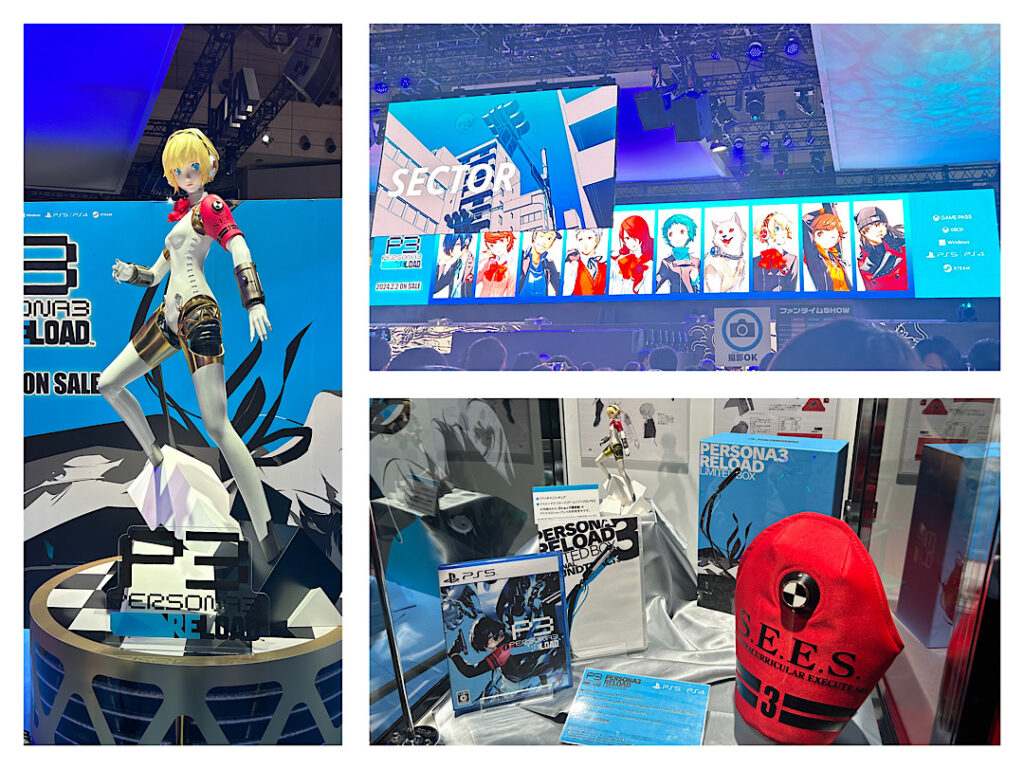 セガ/アトラスブースからペルソナ3リロードの展示です。テーマカラーのブルーを基調に、等身大アイギスとLIMITED BOXの展示がされていました。アイギスが繊細で凛々しくていいですね…。
