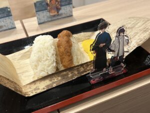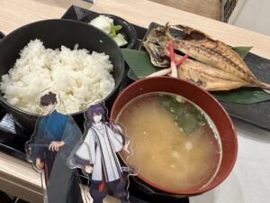 まず、メニューのボリュームがすごい。コラボカフェって控えめなイメージがあるんですが、こちらはがっつりです。そして美味しい。魚うま。御御御付うま。漬物うま。同行者が頼んだうどんはだしがよくきいていて天ぷらもサクサクだったそうです。カステラは底にザラメがこれでもかというくらい付いていました。飲み物はさっぱり甘さ控えめでご飯の邪魔をしないようになっていて疲れた体にしみました。大満足。