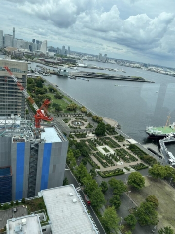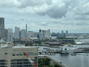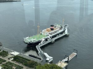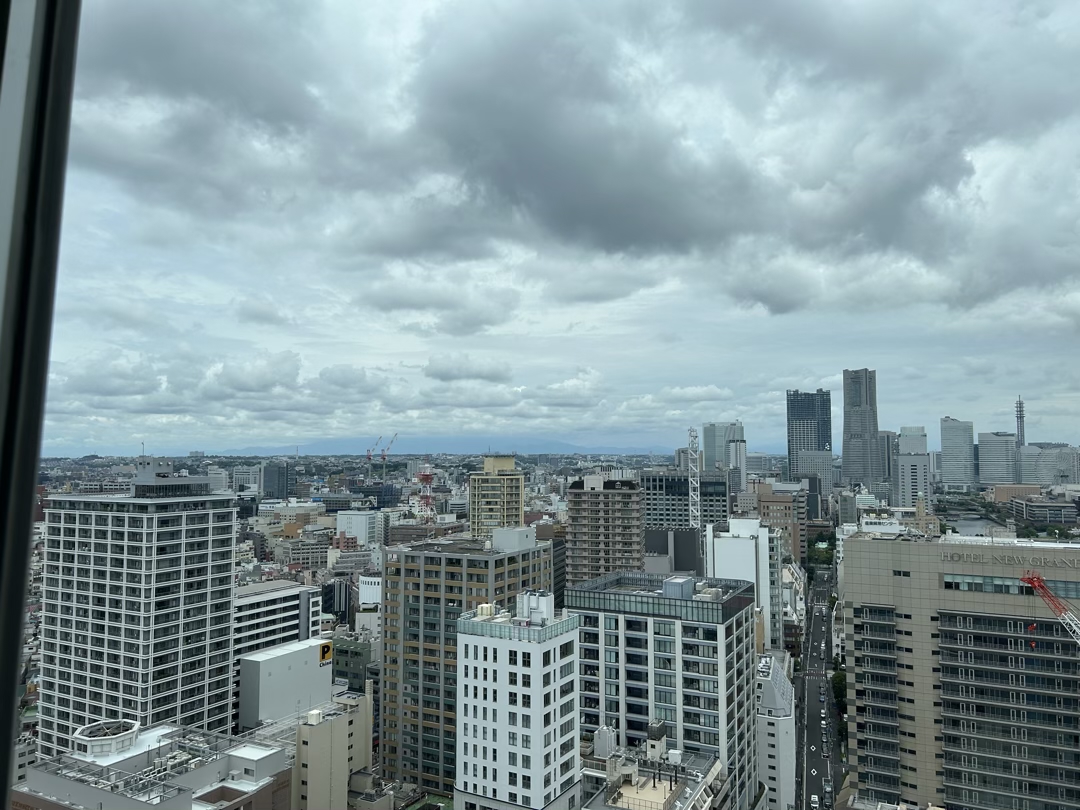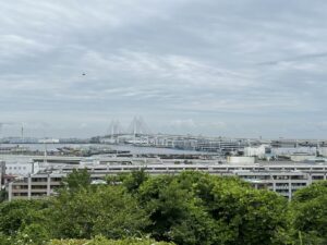 坂を下って少し歩いて、横浜マリンタワーに到着。展望台に上って周囲を一望できます。山下公園や氷川丸などの横浜のシンボルがそこかしこに。当日は曇りだったため富士山は稜線しか見えず。
