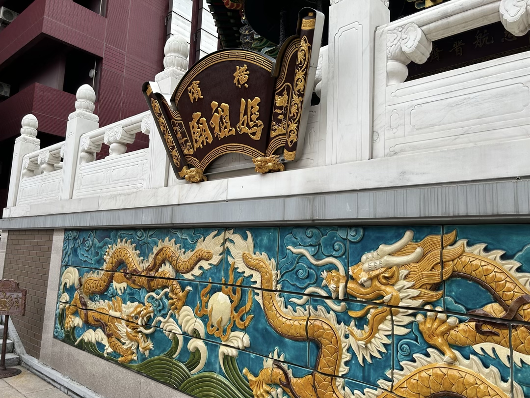 マリンタワーを出ていよいよ中華街へ。この門テレビでよく見るやつだ…!中華街はとにかく活気がすごいですね。人波を縫いながら媽祖廟へ。中国人ガイドのおばちゃんがいろいろ親切に教えてくれて、無事にお参りができました。ちょうどお昼時だったので、お店に入ってご飯を食べました。半チャーハンとネギラーメンというここじゃなくてもよくない?というメニューと、せっかく来たんだからということで小籠包を頼みました。届いたらボリュームすごい!でも美味しかった!腹が!腹ごなしに今度は関帝廟へ歩きます。ここでもお参りをして次の場所へ。