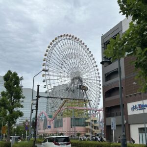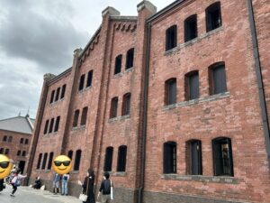 周遊バスあかいくつに乗って赤レンガ倉庫へ。周囲を埋め尽くすほどに屋台が出ている。すごい。倉庫の中をぶらぶら見て歩いてここでお土産をゲット。さらに歩いてコスモワールドの観覧車が見えたのでパシャリ。さすがに足が疲れたので、川辺のベンチで休憩。この辺りではロープウェーも見えました。