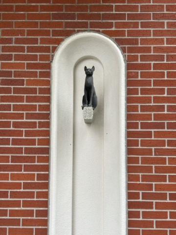 坂を上って、お隣の港の見える丘公園へ。美術館にいたねこちゃんたち。パールのネックレスがおしゃれ。ここからは坂を下っていきます。