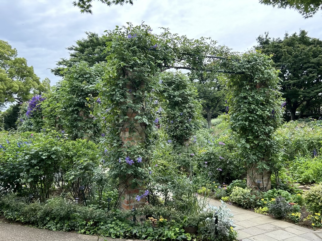 まずはアメリカ山公園から。バラの盛りは過ぎていたようですが、まだちらほら咲いていてきれいでした。いろんな草花を眺めながら坂を上っていきます。