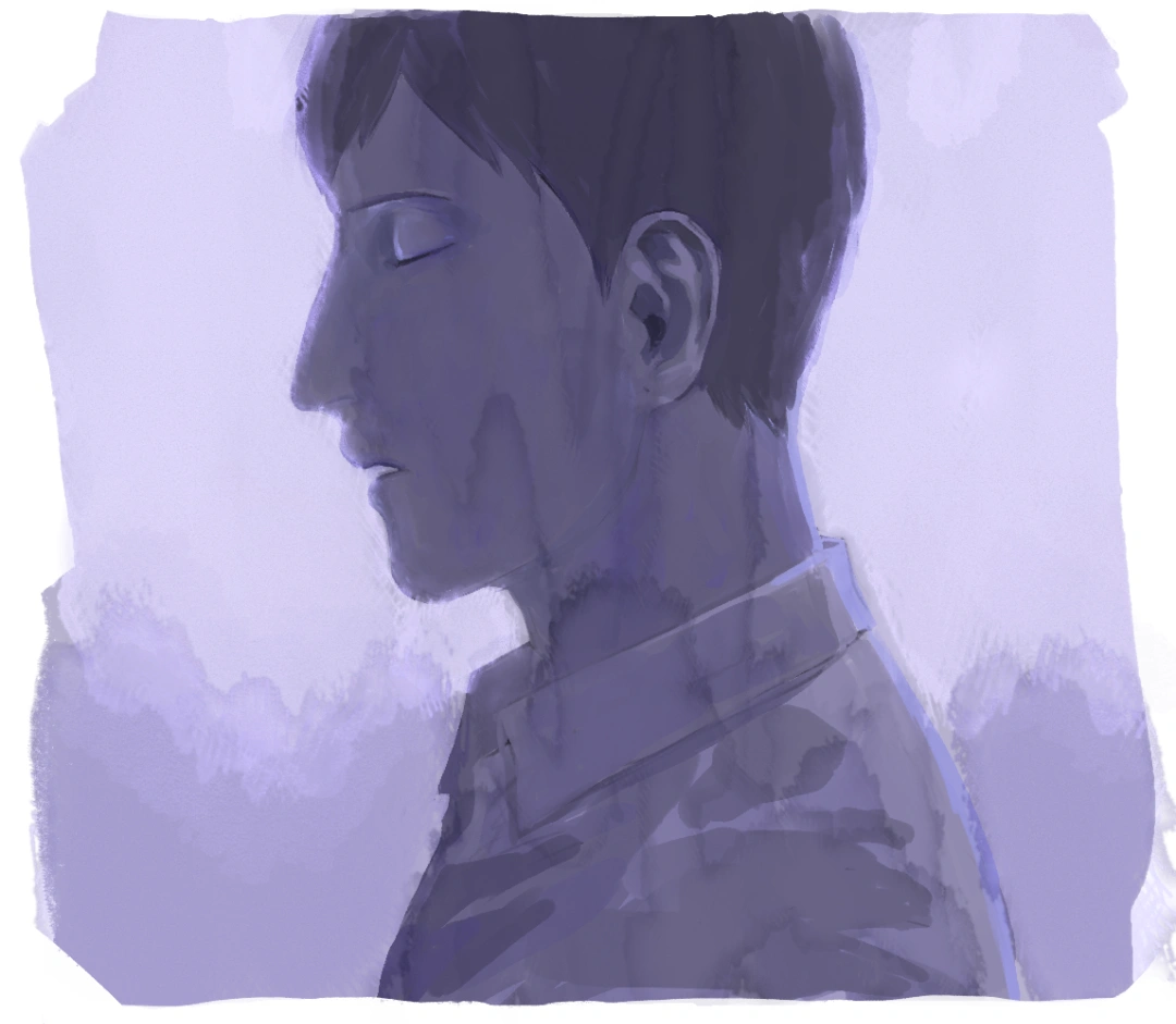 この絵はいつ描いたかも忘れてしまったラフから描きました。ただの横顔だけど。ベルトルトの横顔は今までも何回か描いていて、このラフを描いた時の私はそれらと揃いにしたかったのだと思う。
